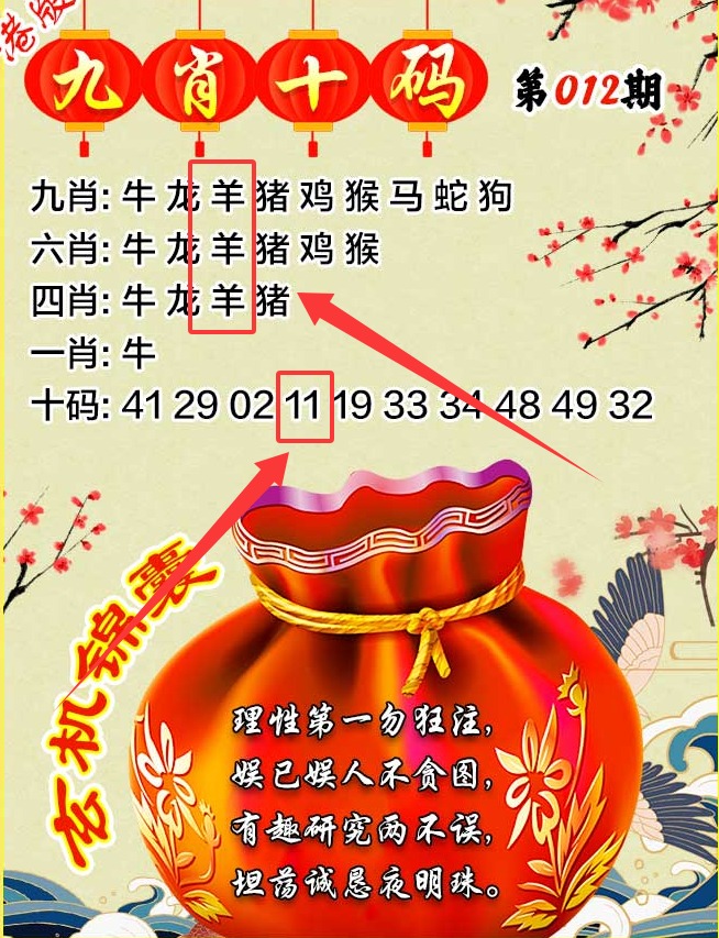 011期藏宝图:【干戈偃息岁丰穰】 浅解:岁丰穰,解鸡虎羊兔蛇龙 综合解肖:鸡虎羊兔蛇龙 |