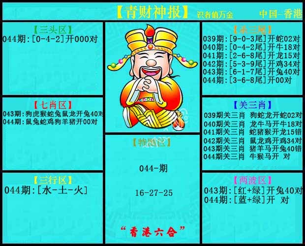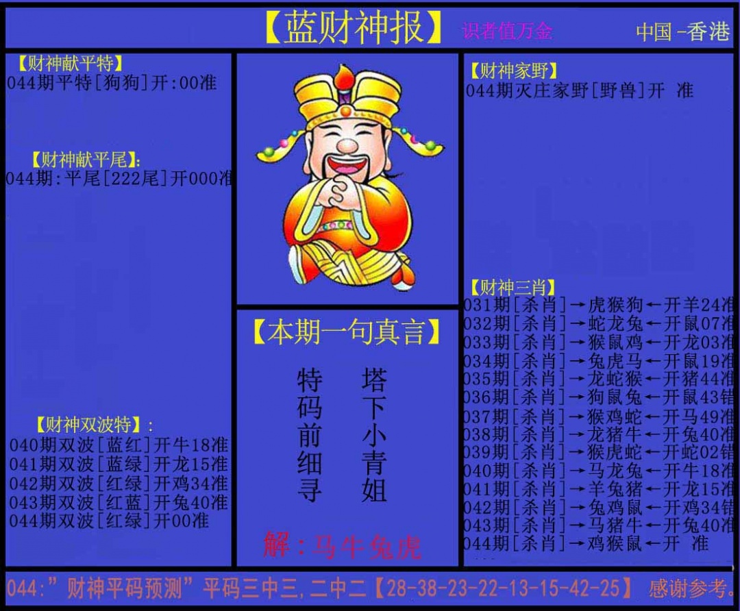 035期:三头中特〖4-3-0〗开:44准
