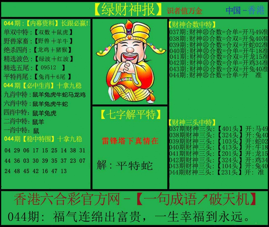 040期:平特一尾〖444尾〗开:44准